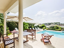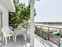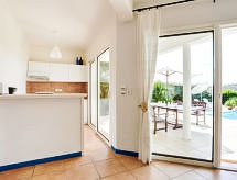 7-Zimmer-Haus 240 m2 auf 2 Stockwerken. Komfortabel eingerichtet: Wohn-/Esszimmer. Ausgang zur Terrasse. 1 Zimmer mit 1 franz. Bett (1 x 140 cm, Länge 190 cm), Dusche. 1 Zimmer mit 1 franz. Bett (1 x 140 cm, Länge 190 cm), Bad/WC. 1 Zimmer mit 2 Betten (90 cm, Länge 190 cm). 1 Zimmer mit 2 Betten (90 cm, Länge 190 cm). Kochnische (4 Kochplatten, Backofen). Dusche, sep. WC. Obergeschoss: Wohn-/Esszimmer mit Sat-TV und Internationale TV-Sender (Flachbildschirm). Ausgang zum Balkon. 1 Zimmer mit 1 franz. Bett (1 x 140 cm, Länge 190 cm), Bad/Dusche/WC und Doppelwaschbecken. Kochnische (Backofen, Geschirrspüler, 4 Glaskeramikherd Platten, Mikrowelle). Sep. WC. E-Heizung. Balkon, Südlage, Terrasse teilweise überdacht, Südlage. Terrassenmöbel, Balkonmöbel, Gartengrill, Liegestühle (6). Schöne Sicht auf den Fluss. Zur Verfügung: Waschmaschine. Internet (Wireless LAN, gratis). Bitte beachten: geeignet für Familien. Rauchmelder. Das Haus ist auch mit einem Balkon ausgestattet. Ein Babybett ist vorhanden. Es gibt ein überdachter Parkplatz. Das Haus ist auch mit einem privaten Pool ausgestattet.- Aktivitäten in der Nähe