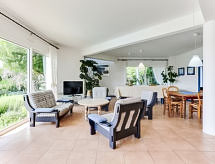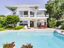 Einfamilienhaus "Les Pinasses". Im Ort, 400 m vom Zentrum von Mimizan Plage, 900 m vom Meer, 900 m vom Strand, 200 m vom Fluss. Zur Alleinbenutzung: Grundstück 750 m2, gepflegter Garten Rasen und Bäumen, Schwimmbad (9 x 5 m, saisonale Verfügbarkeit: 14.Mai. - 24.Sep.) mit Alarmanlage. Aussendusche, Parkplatz auf dem Grundstück, Einzelgarage. Supermarkt 400 m, Bahnstation "Labouheyre" 30 km, Sandstrand 900 m, Hallenbad 6 km, Badesee "Aureilhan" 10 km. Golfplatz (9 Loch) 6 km, Surfschule 900 m, Reitstall 7 km. Nahe gelegene Sehenswürdigkeiten: Arcachon 70 km, Bordeaux 120 km, Biscarosse 40 km, Centre Nautique 7 km, Casino Mimizan Plage. Wandergebiete: Casino Mimizan Plage. Bitte beachten Sie: Schrägboden.Interior
