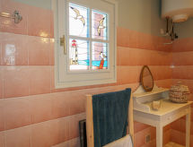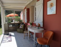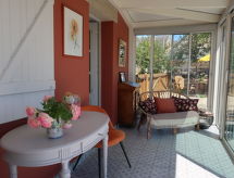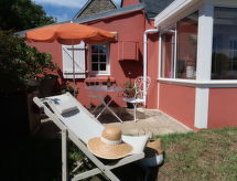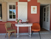 "Entre terre et mer", 1-Zimmer-Haus 46 m2 auf 2 Stockwerken, Südlage. Schön und gemütlich eingerichtet: Wohn-/Esszimmer mit Veranda mit offenem Kamin (nur Deko), Esstisch und TV (Flachbildschirm). Ausgang zur Veranda. Kleine Küche (1 Kochplatte, Backofen, 3 Flammen, Wasserkocher, Mikrowelle). Bad/WC. E-Heizung. Obergeschoss: (steile Treppe) 1 abgeschrägtes, offenes Zimmer mit 1 franz. Bett (140 cm, Länge 190 cm). Grosser Garten, Südlage. Terrassenmöbel, Liegestühle (1). Bitte beachten: Nichtraucher-Haus. Rauchmelder. Inserat einer Privatperson nach Artikel 155, IV, CGI.- Ausstattung
