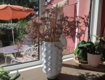 Kleines Einfamilienhaus "Entre terre et mer". Im Weiler Kervriec, 4 km vom Meer. Zur Alleinbenutzung: Grundstück 2'000 m2, Garten mit Rasen und Pflanzen. Im Hause: Einstellraum für Fahrräder, Waschmaschine (zur Mitbenutzung). Parkplatz (für 2 Autos) beim Haus. Lebensmittelgeschäft 1.5 km, Supermarkt 1.3 km, Restaurant 1.5 km, Sandstrand "Penhors" 4 km. Surfschule 4 km. Nahe gelegene Sehenswürdigkeiten: Musée la maison Henaff 1.5 km, Site archéologique de Menez Dregan 10 km, Audierne 16 km, Notre-Dame de Tronoën 18 km, Pont l'Abbé 16 km. Wandergebiete: Baie d'Audierne 4 km.Interior