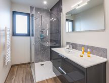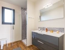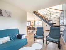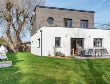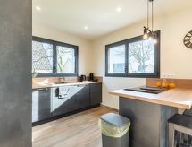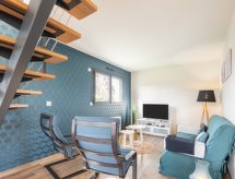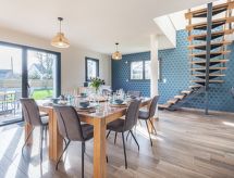 Modernes, komfortables Einfamilienhaus "Les Trembles". Im Ort, 500 m vom Meer, 400 m vom Strand. Zur Alleinbenutzung: Grundstück 600 m2 (eingezäunt), Parkplatz (für 2 Autos) auf dem Grundstück. Lebensmittelgeschäft, Restaurant, Bäckerei, Sandstrand 400 m. Nahe gelegene Sehenswürdigkeiten: Coutances 25 km, Granville 45 km, Mont saint michel 100 km, Cherbourg 50 km.Interior