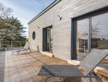 "Les Trembles", 4-Zimmer-Haus 117 m2 auf 2 Stockwerken. Geräumig und hell, schön und modern eingerichtet: Wohn-/Esszimmer mit TV (Flachbildschirm). Ausgang zur Terrasse. 1 Zimmer mit 1 franz. Bett (1 x 140 cm, Länge 190 cm), sep. WC und Dusche. Offene Küche (Backofen, 4 Glaskeramikherd Platten, Toaster, Wasserkocher, Mikrowelle, elektrische Kaffeemaschine). Obergeschoss: 1 Zimmer mit 1 franz. Bett (140 cm, Länge 190 cm). Ausgang zur Terrasse. 1 Zimmer mit 1 x 2 Etagenbetten (90 cm, Länge 190 cm). Bad, sep. WC. Terrasse 30 m2, Terrasse 24 m2. Terrassenmöbel, Gartengrill, Liegestühle (6). Zur Verfügung: Waschmaschine, Wäschetrockner. Internet (Wireless LAN). Bitte beachten: Nichtraucher-Unterkunft. Rauchmelder, Feuerlöscher. Es hat eine Terrasse. Ein Parkplatz ist verfügbar. Sollte das Wetter einmal nicht mitspielen, ist auch ein Fernseher vorhanden. Ein Internetanschluss ist vorhanden. Ein Wäschetrockner ist vorhanden. Ein Mikrowellenofen ist auch vorhanden.- Charakteristik des Mietobjekts