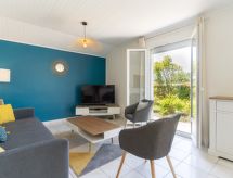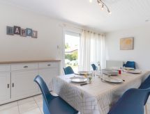 4-Zimmer-Haus 90 m2. Modern eingerichtet: Wohn-/Esszimmer mit TV und Internationale TV-Sender (Flachbildschirm). Ausgang zum Garten, zur Terrasse. 1 Zimmer mit 1 franz. Bett (1 x 140 cm, Länge 190 cm), Waschbecken. 1 Zimmer mit 1 franz. Bett (1 x 140 cm, Länge 190 cm). 1 Zimmer mit 1 franz. Bett (1 x 160 cm, Länge 200 cm). Offene Küche (4 Kochplatten, Backofen, Geschirrspüler, Toaster, Mikrowelle, Tiefkühler, elektrische Kaffeemaschine, Kapseln für die Kaffeemaschine (filtre) extra) mit Petrolofen. Dusche, sep. WC. Grosse Terrasse 20 m2. Terrassenmöbel, Gartengrill. Zur Verfügung: Waschmaschine, Bügeleisen, Babybett, Haartrockner. Internet (Wireless LAN, gratis). Parkplatz. Bitte beachten: Nichtraucher-Haus. 1 kleines Haustier/Hund erlaubt. Rauchmelder. Nicht nur sind hier Haustiere erlaubt, sondern ihr Hund ist auch ein gern gesehener Feriengast. Informieren Sie sich im über den vorhandenen TV Apparat. Ob lokale Neuigkeiten oder internationale Nachrichten, mit dem Fernsehen sind sie stehts gut informiert. Zur Verfügung steht ein Mikrowellengerät.- Ausstattung