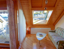 2-Zimmer-Attikawohnung 60 m2 im 4. Stock. Abgeschrägt, schön eingerichtet: Wohn-/Esszimmer mit Kabel-TV. Ausgang zum Balkon, Richtung Süden. 1 Zimmer mit Dachfenster mit 2 Betten (90 cm, Länge 200 cm). Offene Küche (Backofen, Geschirrspüler, 4 Glaskeramikherd Platten, Wasserkocher, elektrische Kaffeemaschine, Kapseln für die Kaffeemaschine (Nespresso) extra). Bad/WC. Fussbodenheizung. Balkon 5 m2. Balkonmöbel. Zur Verfügung: Bügeleisen, Haartrockner. Internet (Wireless LAN, gratis). Maximal 1 Haustier/Hund erlaubt. Badewanne im Haus. Das Haus ist auch mit einem drahtlosen lokalen Netzwerk (WLAN) ausgestattet. Das Haus ist auch mit einem Wäschetrockner ausgestattet.- Ausstattung