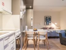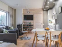 Wunderschöne Atelierwohnung, im schönen Haus im alpinen Stil, im Zentrum von Levi. Diese Ferienwohnung im zweiten Stock des Gebäudes ist eine perfekte Unterkunft für ein Paar oder kleine Familie. Es befindet sich im Zentrum von Levi, in der Nähe aller Dienstleistungen, aber etwas abseits vom Lärm des Nachtlebens von Levi. Sie müssen kein eigenes Auto haben, wenn Sie im Levin Stara übernachten. Restaurants, Geschäfte und Aktivitäten sind von der Wohnung aus zu Fuss erreichbar. Wenn Sie jedoch mit dem Auto anreisen, ist auf dem Parkplatz des Anwesen ein Parkplatz für die Wohnung reserviert. Die Wohnung wurde mit Stil und Funktionalität eingerichtet. Es bietet grossartige Bedinungen für einen fantastischen Urlaub das ganze Jahr über! Die gut ausgestattete Ferienwohnung verfügt über 1 Doppelbett und 2 Liegestühle, die sich zu Einzelbetten öffnen lassen. Es gibt auch Küche, Bad und gemütliche Sauna, privaten Skiraum im Erdgeschoss des Gebäudes und Nummernparkplatz. Der Kamin in der Wohnung wird nicht benutzt. Im Kamin dürfen nur Kerzen verbrannt werden. Ihr Stoffwechsel kommt bei der Hitze in der vorhandenen Sauna auf Trab. Sollte das Wetter einmal nicht mitspielen, ist auch ein Fernseher vorhanden. Unabhängiger sind Sie mit der eigens vorhandenen Waschmaschine. Das Haus ist auch mit einem drahtlosen lokalen Netzwerk (WLAN) ausgestattet.- Ausstattung
