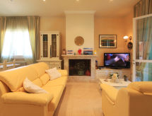 7-Zimmer-Villa 220 m2 auf 3 Stockwerken. Komfortabel und geschmackvoll eingerichtet: Wohn-/Esszimmer mit Sat-TV (Flachbildschirm), DVD und Klimaanlage. 1 Zimmer mit 1 Bett, 1 Ausziehbett und Klimaanlage. 1 Doppelzimmer mit Dusche/Bidet/WC und Klimaanlage. Küche (5 Kochplatten, Backofen, Geschirrspüler, Mikrowelle, Tiefkühler, elektrische Kaffeemaschine). Dusche/Bidet/WC. Obergeschoss: 1 Doppelzimmer mit Klimaanlage. Ausgang zum Balkon. 1 Doppelzimmer mit Klimaanlage. Bad/Bidet/WC. Dachgeschoss: 2 Zimmer, jedes Zimmer mit 2 Betten und Klimaanlage. Dusche/Bidet/WC. Zur Verfügung: Waschmaschine, Wäschetrockner, Safe, Haartrockner. Internet (Wireless LAN, gratis). Für Ihr Wohlbefinden geniessen den Whirlpool in der Urlaubszeit. Das Haus ist auch mit einer Veranda ausgestattet. Geeignet für ein Barbecue. Dank der Waschmaschine die Sie vorfinden, sind weniger Kleider zum mitschleppen. Was wäre eine moderne Küche ohne Mikrowelle? Diejenige welche steht selbstverständlich zur Verfügung.- Charakteristik des Mietobjekts