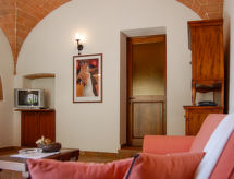 Sehr schöner, alleinstehender Landsitz "Linearis", umgeben von Bäumen, Feldern und Weinbergen. 9 Wohnungen in der Residenz. Im Ortsteil Linari, 3 km vom Zentrum von Poggibonsi, 6 km vom Zentrum von Barberino Val d'Elsa, 15 km vom Zentrum von San Gimignano, alleinstehende, sonnige, erhöhte Lage, 82 km vom Meer, im Grünen. Zur Mitbenutzung: schöner, gepflegter Garten 10'000 m2 (eingezäunt) mit Pflanzen und Bäumen, Wiese, Schwimmbad eingezäunt (14 x 7 m, 165 cm tief, saisonale Verfügbarkeit: 01.Apr. - 05.Nov.). Aussendusche, Poolhaus mit Dusche und WC, Terrasse, Gartenmöbel, Grill, Kinderspielplatz, Poolpflege durch den Besitzer/Gärtner. In der Anlage: Empfang, Aufenthaltsraum, Waschmaschine (extra), Wäschetrockner (zur Mitbenutzung, extra). Haushaltshilfe möglich (extra). 100 m Fussweg bis zum Haus. Parkplatz auf dem Grundstück, Gemeinschaftsgarage (extra). Lebensmittelgeschäft 2 km, Supermarkt 3 km, Restaurant 2 km, Bäckerei 2 km, Bushaltestelle 3 km, Bahnstation "Poggibonsi" 3 km, Sandstrand "Cecina Mare" 72 km, Hallenbad 3 km. Nahe gelegene Sehenswürdigkeiten: Siena 36 km, Firenze 46 km, Volterra 38 km, Pisa 90 km. Bitte beachten: Öffnungszeiten der Rezeption 09:00-13:00 Uhr. Geeignet für Familien, Babyausstattung (inkl.). Ab Hof Verkauf von bäuerlichen Produkten. Bitte beachten: Be- und Entladen am Ferienhaus möglich. Die Residenz wird durch elektrische Tore geschlossen. Der Besitzer wohnt im selben Haus. Alle Häuser/Wohnungen sind individuell eingerichtet. Badekappenpflicht.Interior
