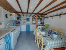 5-Zimmer-Haus. Komfortabel und schön eingerichtet: Wohnzimmer mit Kabel-TV, Internationale TV-Sender, DVD und Holzofen. 1 Zimmer mit 1 franz. Bett und sep. WC. 1 Zimmer mit 2 Betten, Dusche/WC, Sat-TV und DVD. Unteres Geschoss: 1 Zimmer mit 2 Betten. 1 Zimmer mit 1 Bett. Spielzimmer. Küche (4 Kochplatten, Backofen, Geschirrspüler, Mikrowelle, Tiefkühler) mit Esstisch, Radio und CD. Bad/Dusche/WC. E-Heizung. Terrassenmöbel, Gartengrill, Wintergarten. Schöne Sicht auf das Meer. Zur Verfügung: Waschmaschine, Wäschetrockner, Kinderhochstuhl, Babybett bis 2 Jahre. Internet (Wireless LAN). Parkplatz beim Haus. Bitte beachten: Nichtraucher-Haus. Überrascht Sie mit einer herrlichen Aussicht aufs Meer. Es gibt ein Wäschetrockner. Ein DVD Spieler ist verfügbar.- Ausstattung