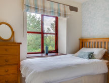 "Bwthyn Gwyn", 3-Zimmer-Landhaus. Komfortabel und gemütlich eingerichtet: Wohn-/Esszimmer mit Schwedenofen, Esstisch, TV und DVD. 1 Doppelzimmer mit 2 Betten. 1 Doppelzimmer mit 1 Doppelbett. Küche (4 Kochplatten, Backofen, Geschirrspüler, Mikrowelle, Tiefkühler). Dusche/WC. Sicht auf den See. Bitte beachten: Nichtraucher-Haus. Maximal 1 Haustier/Hund erlaubt. TV nur EN. Morgens schnell unter die verfügbare Dusche hüpfen, das regt Körper, Geist und Seele an. Sollte das Wetter einmal nicht mitspielen, ist auch ein Fernseher vorhanden. Es hat ein DVD Spieler.- Ausstattung