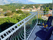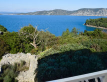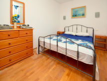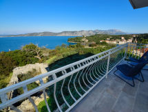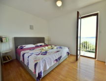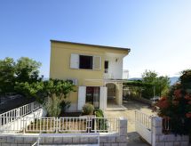 5-Zimmer-Haus 120 m2 auf 2 Stockwerken, Südlage. Gemütlich eingerichtet: Wohn-/Esszimmer mit Kabel-TV (Flachbildschirm), Klimaanlage. 1 Zimmer mit 1 franz. Bett (160 cm, Länge 200 cm). Offene Küche (Backofen, Geschirrspüler, 4 Glaskeramikherd Platten, Tiefkühler). Dusche/WC. Obergeschoss: 1 Zimmer mit 2 Betten (90 cm, Länge 200 cm), Kabel-TV (Flachbildschirm). Ausgang zum Balkon. 1 Zimmer mit 1 Doppelbett (2 x 90 cm, Länge 200 cm), Kabel-TV (Flachbildschirm). 1 Zimmer mit 1 franz. Bett (160 cm, Länge 200 cm), Kabel-TV (Flachbildschirm). Ausgang zum Balkon. Dusche/WC. Balkon 2 m2, Balkon 5 m2. Balkonmöbel. Sicht auf das Meer. Zur Verfügung: Babybett, Haartrockner. Internet (Wireless LAN, gratis). Bei Belegung mit weniger Personen als der maximalen Personenzahl stehen nicht alle Schlafzimmer zur Verfügung. Gewährt spektakulärer Aussicht auf das Meer.- Ausstattung