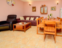 Einfamilienhaus "Lolita", auf 2 Stockwerken. 250 m vom Zentrum von Račišće, ruhige, sonnige, erhöhte Lage, 300 m vom Meer, 300 m vom Strand. Zur Alleinbenutzung: Grundstück 350 m2. Terrasse (40 m2), Gartenmöbel, Grill. Im Hause: Internetzugang, Waschmaschine. Parkplatz (für 2 Autos) beim Haus auf dem Grundstück. Einkaufsgeschäft 270 m, Restaurant 300 m, Fähre 15 km, Kieselstrand 1.2 km, Felsstrand, betonierter Strand 300 m. Die Nachbarschaft ist sehr lärmempfindlich. Ruhe und gutes Benehmen wird erwartet. Jugendgruppen bezahlen bei Ankunft die doppelte Kaution.Interior