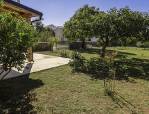 2-Zimmer-Haus 60 m2, Südwestlage. Wohn-/Esszimmer 30 m2 mit 1 Doppeldiwanbett (160 cm, Länge 200 cm), Sat-TV (Flachbildschirm), Klimaanlage. Ausgang zur Terrasse. 1 Zimmer mit 1 franz. Bett (160 cm, Länge 200 cm). Offene Küche (1 Kochplatte, Backofen, Geschirrspüler, 3 Flammen, Tiefkühler, elektrische Kaffeemaschine). Dusche/WC. Terrasse 30 m2, überdacht. Terrassenmöbel, Gartengrill (mobil). Sicht auf den Garten. Zur Verfügung: Internet (Wireless LAN, gratis). In unserem Garten bietet sich Ihnen viel Platz für Entspannung und Erholung. Die drückende Hitze kann Körper und Gemüt stark belasten. Deshalb sind die Räumlichkeiten mit Klimaanlagen ausgestattet.- Ausstattung