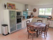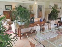 "Lous Bernets", 4-Zimmer-Villa 210 m2 auf 2 Stockwerken. Objekt geeignet für 4 Erwachsene + 2 Kinder. Geräumig und hell, komfortabel und geschmackvoll eingerichtet: grosses Wohn-/Esszimmer mit Panoramafenster mit offenem Kamin (nur Deko), Essecke und Kabel-TV (Flachbildschirm). Ausgang zum Garten. 1 Zimmer mit 1 franz. Bett (1 x 160 cm, Länge 200 cm). Ausgang zum Garten. Grosse, offene Küche (Backofen, Geschirrspüler, 4 Induktionskochplatten, Toaster, Wasserkocher, Mikrowelle, Tiefkühler, elektrische Kaffeemaschine) mit Esstisch. Ausgang zur Terrasse. Dusche, sep. WC. Obergeschoss: 1 abgeschrägtes grosses Zimmer mit 1 franz. Bett (160 cm, Länge 200 cm). Ausgang zum Balkon. 1 abgeschrägtes Kinderzimmer mit 2 Betten (90 cm, Länge 190 cm). Dusche/WC, Doppelwaschbecken. E-Heizung, Klimaanlage. Grosse Terrasse 40 m2, überdacht. Terrassenmöbel, Gartengrill (mobil), Liegestühle (4). Schöne Sicht auf den Wald. Zur Verfügung: Waschmaschine, Bügeleisen, Fliegengitter, Babybett. Internet (Wireless LAN, gratis). Bitte beachten: geeignet für Familien. Nichtraucher-Haus. Rauchmelder. Das Grundstück ist komplett eingezäunt. Lehnen Sie sich zurück, schon beginnt das Feriengefühl im dazugehörigen Garten. Die drückende Hitze kann Körper und Gemüt stark belasten. Deshalb sind die Räumlichkeiten mit Klimaanlagen ausgestattet. Geeignet zum Grillen. Ein überdachter Parkplatz ist verfügbar. Ein privater Pool ist vorhanden. Ein beheizter Pool ist verfügbar. Es hat ein Internetanschluss. Zur Verfügung steht ein Mikrowellengerät.- Ausstattung