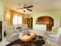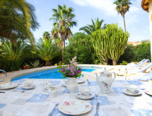 Gemütliches Einfamilienhaus "Lucien Marie". Im Ort, 3.8 km vom Zentrum von Calpe, ruhige Lage im Villenviertel, verkehrsberuhigte Zone, 2.1 km vom Meer, in einer Sackgasse. Zur Alleinbenutzung: Grundstück 800 m2 (eingezäunt), Schwimmbad nierenförmig (9 x 4 m, 160 - 190 cm tief, saisonale Verfügbarkeit: 01.Jan. - 31.Dez.). Aussendusche, Terrasse, Gartenmöbel, Grill. Im Hause: Wireless LAN, Waschmaschine. Parkplatz (für 2 Autos). Supermarkt 1.3 km, Bar 1.3 km, Sandstrand 2.9 km, Badebucht 1.7 km. Sporthafen 5.7 km. Nahe gelegene Sehenswürdigkeiten: Agualandia - Mundomar, Terra Mítica - Terra Natura, Benidorm Palace en Benidorm.Interior