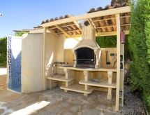 4-Zimmer-Haus 140 m2. Gemütlich eingerichtet: Wohn-/Esszimmer mit Sat-TV, Digital-TV, Internationale TV-Sender, Klimaanlage, Ventilator und Warmluftheizung. Ausgang zur Veranda. Esszimmer mit Klimaanlage und Warmluftheizung. Ausgang zum Gartensitzplatz. 1 Zimmer mit 1 franz. Bett (180 cm). 1 Zimmer mit 1 franz. Bett (150 cm). Offene Küche (Backofen, Geschirrspüler, 4 Glaskeramikherd Platten, Mikrowelle, elektrische Kaffeemaschine). Bad/Bidet/WC, Dusche/WC. Terrassenmöbel, Gartengrill, Liegestühle (4). Zur Verfügung: Waschmaschine, Kinderhochstuhl, Babybett bis 2 Jahre, Haartrockner. Internet (Wireless LAN). Parkplatz (eingezäunt, 2 Autos). AT-481411-A Mit eingezäuntem Grundstück. Das Haus ist auch mit einem privaten Pool ausgestattet.- Aktivitäten in der Nähe