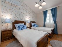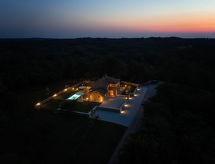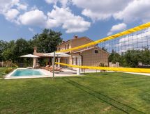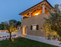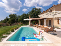 Schöne Villa "Lucija", auf 2 Stockwerken, Baujahr 2020. Im Weiler Čuleti, 8 km vom Zentrum von Pazin, 8 km vom Zentrum von Gračišće, ruhige, sonnige Lage, direkt am Waldrand, 27 km vom Meer, im Grünen. Zur Alleinbenutzung: Grundstück 1'250 m2, Rasen 800 m2 Pflanzen, Schwimmbad (32 m2, 150 cm tief, saisonale Verfügbarkeit: 01.Mai. - 15.Okt.) mit Innentreppe. Ungleichmässige Schwimmbadform, Aussendusche, Volleyball, Badminton, Terrasse (50 m2), Gartenmöbel, Grill, Kinderspielplatz (Rutschbahn, Schaukel). Im Hause: Internetzugang, Klimaanlage, Waschmaschine. Parkplatz (für 3 Autos) beim Haus auf dem Grundstück. Einkaufsgeschäft 8 km, Supermarkt 8 km, Restaurant 8 km, Café 5 km, Kieselstrand 27 km. Radweg 8 km. Bitte beachten: geeignet für Familien. Der Besitzer akzeptiert keine Jugendgruppen. Flugplatz 50 km vom Haus. Zur Alleinbenutzung:Sommerküche (2 Kochplatten). Bei uns machen sich Wanderfans zu jeder Jahreszeit auf, die Natur Im flachen Gebiet zu erkunden.Interior
