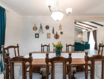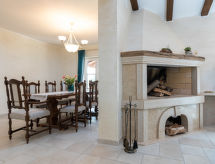 4-Zimmer-Villa 150 m2 auf 2 Stockwerken, Südlage. Schön eingerichtet: Wohn-/Esszimmer 60 m2 mit offenem Kamin und Sat-TV. Ausgang zur Terrasse. 1 Zimmer 13 m2 mit 1 Doppelbett (2 x 90 cm, Länge 200 cm), Bad/Bidet/WC und Sat-TV. Offene Küche (Backofen, Geschirrspüler, 4 Induktionskochplatten, Mikrowelle, Tiefkühler, elektrische Kaffeemaschine). Sep. WC. Obergeschoss: 1 Zimmer 13 m2 mit 1 Doppelbett (2 x 90 cm, Länge 200 cm), Dusche/WC und Sat-TV. 1 Zimmer mit 2 Betten (90 cm, Länge 200 cm), Dusche/WC und Sat-TV. Ausgang zur Terrasse. Terrasse 16 m2, überdacht. Terrassenmöbel, Liegestühle. Sicht auf das Schwimmbad und den Wald. Zur Verfügung: Safe, Kinderhochstuhl, Babybett. Internet (Wireless LAN, gratis). Bitte beachten: Nichtraucher-Haus. 1 Haustier/Hund erlaubt. Feuerlöscher. Zweibeiner und Vierbeiner gemeinsam im Urlaub ist hier möglich, denn hier sind alle willkommen. Haustiere sind erlaubt. Eine Terrasse ist verfügbar. Es hat eine Feuerstelle. Es gibt ein privater Pool. Sollte das Wetter einmal nicht mitspielen, ist auch ein Fernseher vorhanden.- Charakteristik des Mietobjekts