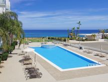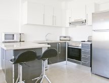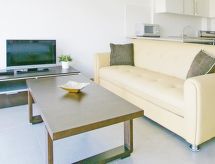 1-Zimmer-Wohnung für 2 Personen, 35 m2, modern eingerichtet. Wohn-/Esszimmer mit Regional-TV und DVD. Rauchen nicht erlaubt. Internet (Wireless LAN [WLAN]). 1 Doppelbett und 1 Diwanbett. Küche mit 4 - Platten Herd, Mikrowelle, Backofen, Esstisch, Geschirrspüler, Kühlschrank und Tiefkühler. Dusche/WC. Balkon, Terrassenmöbel. Weitere Ausstattung: Safe, Haartrockner, Bügeleisen, Waschmaschine. Das Haus ist auch mit einem überdachten Parkplatz ausgestattet. Ein Pool ist verfügbar. Das Haus ist auch mit einem Internetanschluss ausgestattet. Es gibt ein DVD Spieler.- Charakteristik des Mietobjekts
