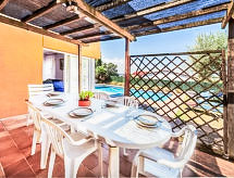 "Lull de Mar", 5-Zimmer-Haus 130 m2 auf 3 Stockwerken. Hell, geschmackvoll und gemütlich eingerichtet: Wohn-/Esszimmer mit Digital-TV. Ausgang zur Terrasse, zum Schwimmbad. Küche (4 Kochplatten, Backofen, Geschirrspüler, Toaster, Wasserkocher, Mikrowelle, elektrische Kaffeemaschine). Dusche/WC. Unteres Geschoss: mit 1 franz. Bett (135 cm, Länge 190 cm). Obergeschoss: 1 Zimmer mit 2 Betten (90 cm, Länge 190 cm). Bad/Bidet/WC. 2. Obergeschoss: 1 Zimmer mit 1 franz. Bett (150 cm, Länge 190 cm), Bad/Bidet/WC. Ausgang zur Terrasse. 1 Zimmer mit 2 Betten (90 cm, Länge 190 cm). Sicht auf die Landschaft und die Ortschaft. Zur Verfügung: Waschmaschine. Internet (Wireless LAN, gratis). Bitte beachten: 1 Haustier/Hund erlaubt. TV nur ES. HUTG020100 Für den Urlaub mit Hund oder Katze. Haustiere sind herzlich willkommen. Mit eingezäuntem Grundstück. Es gibt eine Veranda. Das Haus ist auch mit einem privaten Pool ausgestattet. Ein Internetanschluss ist verfügbar.- Charakteristik des Mietobjekts