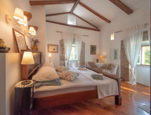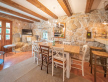 4-Zimmer-Haus 120 m2 auf 2 Stockwerken. Rustikal eingerichtet: Wohn-/Schlafzimmer 30 m2 mit 1 Diwanbett (100 cm, Länge 180 cm), 1 Doppelbett (2 x 90 cm, Länge 200 cm), Esstisch, Küchenblock, Bad/WC, Sat-TV und Klimaanlage. Wohn-/Esszimmer 30 m2 mit offenem Kamin, Sat-TV und Klimaanlage. Offene Küche (Backofen, Geschirrspüler, 4 Glaskeramikherd Platten, Tiefkühler, elektrische Kaffeemaschine). Dusche/WC. Obergeschoss: 1 Zimmer 16 m2 mit 1 Bett (80 cm, Länge 190 cm), 1 Doppelbett (2 x 80 cm, Länge 200 cm), Klimaanlage. 1 Zimmer mit 1 Doppelbett (2 x 80 cm, Länge 200 cm), Klimaanlage. Ausgang zur Terrasse. Bad/WC. Heizung (extra), Klimaanlage (extra). Terrasse 12 m2. Terrassenmöbel, Liegestühle. Sicht auf das Schwimmbad und die Landschaft. Zur Verfügung: Babybett. Internet (Wireless LAN, gratis). Ein Haus im oberen Erdgeschoss (externer, separater Eingang): Wohn-/Schlafzimmer und offene Küche. Das andere Haus im oberen Erdgeschoss, auf 2 Ebenen (externer, separater Eingang): Wohn-/Essbereich und offene Küche im oberen Erdgeschoss, 2 Schlafzimmer im ersten Stock. Raum mit Sauna und Dusche/WC (externer, separater Eingang) im oberen Erdgeschoss. Es gibt ein Babybett. Es hat eine Sauna. Es hat ein Pool. Ein privater Pool ist verfügbar. Sollte das Wetter einmal nicht mitspielen, ist auch ein Fernseher vorhanden.- Aktivitäten in der Nähe