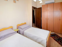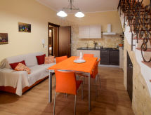 3-Zimmer-Haus 80 m2, im Erdgeschoss. Renoviert im Jahre 2019, komfortabel und geschmackvoll eingerichtet: Wohnzimmer. 1 Doppelzimmer mit Klimaanlage und Warmluftheizung. Ausgang zum Balkon. 1 Zimmer mit 2 Betten, Klimaanlage und Warmluftheizung. Küche (4 Kochplatten, Backofen, Geschirrspüler, Toaster, Wasserkocher, Tiefkühler, elektrische Kaffeemaschine) mit Esstisch, TV (Flachbildschirm). Ausgang zum Garten, zum Gartensitzplatz. 2 Duschen/Bidet/WC. Klimaanlage, Warmluftheizung. Ausgang zur Terrasse. Balkon 5 m2, grosse Terrasse 70 m2 teilweise überdacht, Gartensitzplatz 15 m2, teilweise überdacht. Terrassenmöbel, Gartengrill. Sicht auf das Meer und die Berge. Zur Verfügung: Waschmaschine, Bügeleisen, Kinderhochstuhl, Babybett bis 2 Jahre, Haartrockner. Internet (Wireless LAN, gratis). Bitte beachten: Nichtraucher-Unterkunft. Maximal 1 Haustier/Hund erlaubt. Mit eingezäuntem Grundstück. Treten Sie ein und spüren die erfrischende Brise der Klimaanlage. Eine Veranda ist vorhanden.- Ausstattung