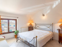 3-Zimmer-Attikawohnung 105 m2, im Dachgeschoss. Hell, komfortabel eingerichtet: grosses Wohn-/Esszimmer mit Esstisch und TV (Flachbildschirm), G-Heizung und Klimaanlage. 1 abgeschrägtes Doppelzimmer. 1 abgeschrägtes Zimmer mit 1 Bett und 1 Doppelbett. Kochnische (4 Kochplatten, Backofen, Geschirrspüler, Mikrowelle, Tiefkühler). 2 Duschen/Bidet/WC. Heizung nur verfügbar von 01.11. bis 15.04. Sicht auf die Berge. Zur Verfügung: Waschmaschine, Bügeleisen, Haartrockner. Internet (Wireless LAN, gratis). Parkplatz Nr. 5 (eingezäunt, 1 Auto). Geeignet für Familien. 1 Haustier/Hund erlaubt. Die drückende Hitze kann Körper und Gemüt stark belasten. Deshalb sind die Räumlichkeiten mit Klimaanlagen ausgestattet. Sollte das Wetter einmal nicht mitspielen, ist auch ein Fernseher vorhanden.- Ausstattung