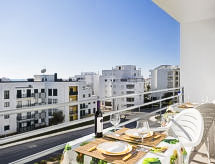 "Madeleine T2", 3-Zimmer-Wohnung 74 m2 im 3. Stock. Geräumig, sehr komfortabel und schön eingerichtet: Salon mit 1 Diwanbett, Esstisch, TV, Internationale TV-Sender, Flachbildschirm und Klimaanlage. Ausgang zum Balkon. 1 Zimmer mit 1 franz. Bett (140 cm, Länge 190 cm). 1 Zimmer mit 2 Betten (90 cm, Länge 190 cm). Küche (Backofen, Geschirrspüler, 4 Glaskeramikherd Platten, Mikrowelle, Tiefkühler, elektrische Kaffeemaschine) mit Esstisch. Dusche/WC, Bad oder Dusche/WC. Keine Heizmöglichkeit. Gartengrill (mobil). Sicht auf die Ortschaft. Zur Verfügung: Waschmaschine, Bügeleisen, Babybett bis 2 Jahre, Haartrockner. Internet (Wireless LAN). Garage Nr. 3G. Geeignet für Familien. 58762/AL Die drückende Hitze kann Körper und Gemüt stark belasten. Deshalb sind die Räumlichkeiten mit Klimaanlagen ausgestattet. Geeignet für ein Barbecue. Das Haus ist auch mit einem Babybett ausgestattet. Ein überdachter Parkplatz ist vorhanden. Informieren Sie sich im über den vorhandenen TV Apparat. Ob lokale Neuigkeiten oder internationale Nachrichten, mit dem Fernsehen sind sie stehts gut informiert. Das Haus ist auch mit einem Internetanschluss ausgestattet.- Ausstattung