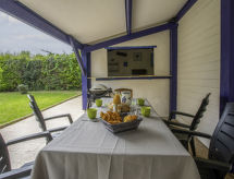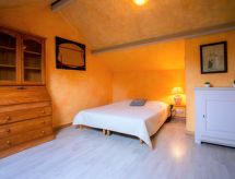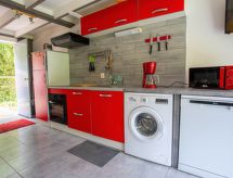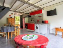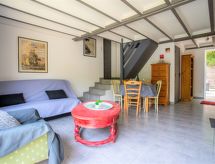 3-Zimmer-Reihenhaus 65 m2. Komfortabel und schön eingerichtet: Wohn-/Esszimmer mit 1 Diwanbett (120 cm, Länge 180 cm), TV (Flachbildschirm). Offene Küche (Backofen, Geschirrspüler, 3 Glaskeramikherd Platten, Mikrowelle, elektrische Kaffeemaschine). Dusche/WC. E-Heizung. Obergeschoss: 1 grosses Zimmer, niedrige Türrahmen, Höhe 170 cm mit 1 Doppelbett (2 x 90 cm, Länge 190 cm). 1 Zimmer, niedrige Türrahmen, Höhe 175 cm mit 1 franz. Bett (140 cm, Länge 190 cm). Terrassenmöbel, Gartengrill Elektrogrill. Zur Verfügung: Waschmaschine. Internet (Wireless LAN, gratis). Bitte beachten: Nichtraucher-Haus. 1 Haustier/Hund erlaubt. Rauchmelder. Mit eingezäuntem Grundstück. Ein dazugehöriger idyllischer Garten lädt zum Verweilen in der Sonne ein. Das Haus ist auch mit einem Ofen ausgestattet.- Ausstattung