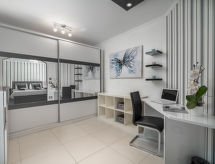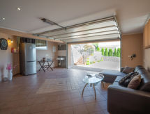 5-Zimmer-Villa 240 m2 auf 2 Stockwerken. Wohn-/Esszimmer 70 m2 mit Kabel-TV (Flachbildschirm), DVD, Heimkino und Klimaanlage. Ausgang zur Terrasse. 1 Zimmer mit 1 franz. Bett (160 cm, Länge 200 cm), TV (Flachbildschirm). 1 Zimmer 22 m2 mit 1 franz. Bett (160 cm, Länge 200 cm), TV (Flachbildschirm). Ausgang zur Terrasse. Offene Küche (Backofen, Geschirrspüler, 4 Induktionskochplatten, Mikrowelle, Tiefkühler, elektrische Kaffeemaschine). Sitzbad/WC, sep. WC. Unteres Geschoss: 1 Zimmer mit 2 Betten (90 cm, Länge 200 cm), TV (Flachbildschirm), Klimaanlage. 1 Zimmer mit 1 franz. Bett (160 cm, Länge 200 cm), TV (Flachbildschirm), Klimaanlage. Dusche/WC. Terrasse 150 m2, 2 Terrassen 20 m2, überdacht. Terrassenmöbel, Liegestühle. Sicht auf das Schwimmbad. Zur Verfügung: Safe, Babybett. Internet (Wireless LAN, gratis). Terrasse (30m2). Das Haus ist auch mit einem überdachten Parkplatz ausgestattet. Ein Pool ist vorhanden. Ein privater Pool ist vorhanden. Dank der Waschmaschine die Sie vorfinden, sind weniger Kleider zum mitschleppen. Ein WLAN (Drahtloses lokales Netzwerk) ist verfügbar. Ein Wäschetrockner ist verfügbar. Es hat ein Tischtennistisch.- Ausstattung