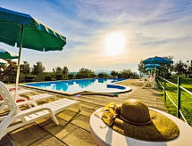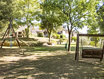 " Quercia", 3-Zimmer-Wohnung 58 m2, im Erdgeschoss. Schön eingerichtet: Wohn-/Schlafzimmer mit 1 Diwanbett, offenem Kamin, Esstisch, TV und Stereoanlage. 1 Zimmer mit 1 franz. Bett (160 cm). 1 Zimmer mit 2 Betten und Dusche/WC. Offene Küche (4 Kochplatten, Backofen, Geschirrspüler, Mikrowelle, Tiefkühler, elektrische Kaffeemaschine). Dusche/WC. G-Heizung, Klimaanlage. Terrasse überdacht. Terrassenmöbel, Liegestühle. Panoramasicht. Zur Verfügung: Waschmaschine, Safe. Internet (Wireless LAN, gratis). Spielangebot für Kinder aller Altersklassen sind auf dem Areal vorhanden. Die drückende Hitze kann Körper und Gemüt stark belasten. Deshalb sind die Räumlichkeiten mit Klimaanlagen ausgestattet. Es hat eine Terrasse. Das Haus ist auch mit einem Geschirrspüler ausgestattet. Informieren Sie sich im über den vorhandenen TV Apparat. Ob lokale Neuigkeiten oder internationale Nachrichten, mit dem Fernsehen sind sie stehts gut informiert. Ein Tischtennistisch ist vorhanden.- Ausstattung