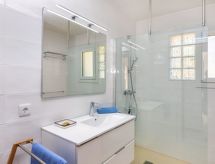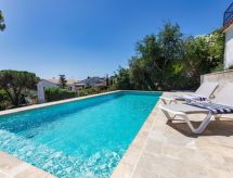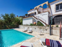 "Maragda", 4-Zimmer-Villa 90 m2 im 2. Stock. Zweckmässig eingerichtet: Obergeschoss: Wohn-/Esszimmer mit Digital-TV. Ausgang zur Terrasse. 3 Zimmer, jedes Zimmer mit 2 Betten (90 cm, Länge 190 cm). Offene Küche (4 Kochplatten, Geschirrspüler, Toaster, Wasserkocher, Mikrowelle, elektrische Kaffeemaschine). 2 Duschen/WC. Keine Heizmöglichkeit. Terrasse. Terrassenmöbel, Liegestühle (3). Zur Verfügung: Waschmaschine, Bügeleisen, Kinderhochstuhl, Babybett, Haartrockner. Internet (Wireless LAN, gratis). Parkplatz (2 Autos). HUTG-064138 Es gibt ein Babybett. Das Haus ist auch mit einem Pool ausgestattet. Ein privater Pool ist verfügbar.- Ausstattung