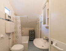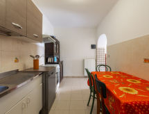 "Margherita", 3-Zimmer-Wohnung 80 m2, im Erdgeschoss. Hell, zweckmässig eingerichtet: Wohn-/Schlafzimmer mit 1 Doppeldiwanbett (160 cm), Esstisch und TV. Ausgang zur Terrasse. 2 Zimmer, jedes Zimmer mit 1 franz. Bett (160 cm). Offene Küche (4 Kochplatten, Backofen, Geschirrspüler, Tiefkühler) mit Esstisch, auf 2 Ebenen. Bad/WC. G-Heizung. Heizung nur verfügbar von 15.10. bis 30.04. Terrasse 20 m2. Terrassenmöbel, Gartengrill (mobil), Abstellkammer. Eingeschränkte Sicht auf das Meer. Zur Verfügung: Waschmaschine, Fliegengitter. Internet (Wireless LAN, gratis). CITRA: 008065-LT-0197 Eine Badewanne ist vorhanden. Es hat ein Geschirrspüler. Das Haus ist auch mit einem Ofen ausgestattet.- Ausstattung