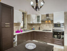 6-Zimmer-Villa 130 m2. Komfortabel und geschmackvoll eingerichtet: Esszimmer mit Küchenblock, Klimaanlage und Warmluftheizung. Ausgang zum Gartensitzplatz. Wohn-/Esszimmer mit Sat-TV (Flachbildschirm). Ausgang zum Gartensitzplatz. 2 Doppelzimmer, jedes Zimmer mit Klimaanlage und Warmluftheizung. 2 Zimmer, jedes Zimmer mit 2 Betten, Klimaanlage und Warmluftheizung. Küche (4 Kochplatten, Toaster, Wasserkocher, Mikrowelle, Tiefkühler, elektrische Kaffeemaschine) mit Klimaanlage. Ausgang zum Gartensitzplatz. 2 Duschen/Bidet/WC. Terrassenmöbel, Gartengrill, Liegestühle. Panoramasicht auf das Meer und das Schwimmbad. Zur Verfügung: Waschmaschine, Bügeleisen, Kinderhochstuhl, Babybett bis 2 Jahre, Haartrockner. Internet (Wireless LAN, gratis). Parkplatz (3 Autos). Bitte beachten: Nichtraucher-Haus. Bei Buchungen von 4 Personen steht den Gästen ein Teil des Hauses nicht zur Verfügung. Das gesamte Anwesen, einschließlich des Pools, steht ausschließlich zur Verfügung. Es gibt zwei voll ausgestattete Küchen im Haus. Mit Aussicht aufs Meer. Ein Pool ist vorhanden. Das Haus ist auch mit einem privaten Pool ausgestattet. Ein drahtloses lokales Netzwerk (WLAN) ist vorhanden.- Ausstattung