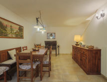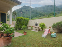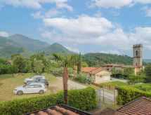 5-Zimmer-Doppelhaushälfte 150 m2 auf 3 Stockwerken, im erhöhten Erdgeschoss. Objekt geeignet für 4 Erwachsene + 2 Kinder. Schön und gemütlich eingerichtet: Wohn-/Esszimmer mit Esstisch und Sat-TV. Ausgang zur Terrasse. 1 Zimmer mit 1 Doppelbett. Ausgang zum Garten. Kochnische (Backofen, Geschirrspüler, 4 Flammen, Toaster, Wasserkocher, Tiefkühler, elektrische Kaffeemaschine). Dusche/Bidet/WC. Unteres Geschoss: (geländerlose Treppe) Wohn-/Esszimmer mit offenem Kamin, Esstisch und Sat-TV. Kochnische (Backofen, 4 Flammen). Obergeschoss: (geländerlose Treppe) 1 Zimmer mit 1 franz. Bett (160 cm). Ausgang zum Balkon. 1 Zimmer mit 1 franz. Bett (140 cm). Ausgang zur Terrasse. Dusche/Bidet/WC. G-Heizung. Balkon, Terrasse überdacht. Terrassenmöbel, Gartengrill, Liegestühle (2), Abstellkammer. Sicht auf die Berge, den Wald und Camaiore. Zur Verfügung: Waschmaschine, Safe, Bügeleisen, Kinderhochstuhl, Babybett bis 2 Jahre, Haartrockner. Internet (Wireless LAN, gratis). Parkplatz (3 Autos) beim Haus. Bitte beachten: Nichtraucher-Unterkunft. Maximal 1 Haustier/Hund erlaubt. Eigener Eingang. Bitte geniessen Sie ihren Tabak nicht im Ferienobjekt. Es verstösst gegen die Hausordnung. Das Grundstück ist komplett eingezäunt. Ein Babybett ist verfügbar. Es gibt eine Feuerstelle. Es hat ein Internetanschluss. Es hat ein Tischtennistisch.- Ausstattung
