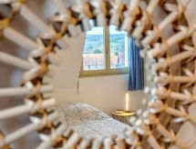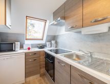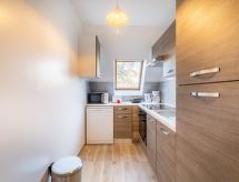 2-Zimmer-Maisonette-Wohnung 48 m2 im 4. Stock. Eingang. Wohn-/Esszimmer mit 1 Doppeldiwanbett (1 x 140 cm, Länge 190 cm), TV (Flachbildschirm). Ausgang zum Balkon. Kleine Küche (Backofen, Geschirrspüler, 4 Glaskeramikherd Platten, Toaster, Wasserkocher, elektrische Kaffeemaschine). Sep. WC. Obergeschoss: 1 Zimmer mit 1 franz. Bett (1 x 140 cm, Länge 190 cm). Dusche/WC. E-Heizung. Kleiner Balkon 1 m2. Fernsicht auf die Landschaft. Zur Verfügung: Waschmaschine. Internet (Wireless LAN, gratis). Bitte beachten: Nichtraucher-Unterkunft. Rauchmelder. 142200003307F Residenz. Ist ein regelmäßiges Duschritual fest im Tagesablauf verankert? Das schaffen wir, denn eine Dusche ist vorhanden. Objekt verfügt über einen Aufzug. Ein drahtloses lokales Netzwerk (WLAN) ist vorhanden.- Charakteristik des Mietobjekts