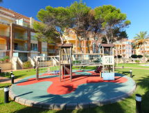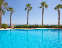 "Marina Azul", 3-Zimmer-Wohnung 75 m2. Geräumig, sehr schön und gemütlich eingerichtet: Wohn-/Esszimmer mit Digital-TV, Klimaanlage und Warmluftheizung. Ausgang zur Terrasse mit 1 franz. Bett (150 cm, Länge 190 cm), Bad/WC, Klimaanlage und Warmluftheizung. 1 Zimmer mit 2 Betten (90 cm, Länge 190 cm), Klimaanlage und Warmluftheizung. Küche (Backofen, 3 Glaskeramikherd Platten, Mikrowelle, Tiefkühler, elektrische Kaffeemaschine). Dusche/WC. Grosse Terrasse. Herrliche Sicht auf das Meer, das Schwimmbad und den Garten. Zur Verfügung: Waschmaschine, Bügeleisen, Kinderhochstuhl, Babybett, Haartrockner. Internet (Wireless LAN, gratis). Garage Nr. 38. AT-449245-A Bequem mit dem Lift bis vor die Haustür. Lehnen Sie sich zurück, schon beginnt das Feriengefühl im dazugehörigen Garten. Auf dem Spielplatz können sich die Kinder austoben. Eine Terrasse ist verfügbar. Ein überdachter Parkplatz ist verfügbar. Es gibt ein Kinderbecken. Um auch mal was schnell selber zuzubereiten, steht ein Mikrowellenofen parat. Es hat ein Ofen.- Aktivitäten in der Nähe