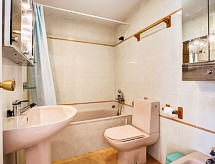 2-Zimmer-Wohnung 41 m2 im 3. Stock. Wohn-/Esszimmer 20 m2 mit 1 Diwanbett, 1 Ausziehbett, Digital-TV, Radio und E-Heizofen. 1 Zimmer mit 2 Betten und E-Heizofen. Offene Küche (Backofen). Bad/Bidet/WC. Terrasse 7 m2, überdacht. Terrassenmöbel. Fernsicht auf das Meer und den Hafen. Zur Verfügung: Waschmaschine. Parkplatz. VV.MU.1098-1 Badewanne im Haus. Sie gelangen mit dem Aufzug zur Etage der Wohnung. Sollte das Wetter einmal nicht mitspielen, ist auch ein Fernseher vorhanden.- Ausstattung
