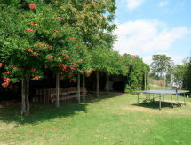 "Marina (TNT100)", 7-Zimmer-Haus 350 m2 auf 2 Stockwerken. Schön und geschmackvoll eingerichtet: Wohnzimmer mit offenem Kamin, TV und Stereoanlage. Ausgang zum Garten. Esszimmer mit Esstisch. 1 Zimmer mit 1 franz. Bett (160 cm). Wohn-/Schlafzimmer mit 1 Doppeldiwanbett, Esstisch und Küchenblock. Küche (Backofen, Geschirrspüler, 5 Flammen, Toaster, Wasserkocher, Mikrowelle, Tiefkühler, elektrische Kaffeemaschine) mit Esstisch. Ausgang zum Garten. Dusche/WC, sep. WC. Obergeschoss: 1 Zimmer mit 1 franz. Bett (160 cm), offenem Kamin, Bad/Dusche/WC und Doppelwaschbecken. 2 Zimmer, jedes Zimmer mit 1 franz. Bett (160 cm), Dusche/WC. Parkettböden, Natursteinböden. Gartengrill (mobil). Zur Verfügung: Waschmaschine, Kinderhochstuhl, Babybett. Internet (Wireless LAN, gratis). Bitte beachten: Nichtraucher-Haus. Maximal 1 Haustier/Hund erlaubt. Keine interne Verbindung zwischen den separaten Wohneinheiten. Bei Belegung mit weniger Personen als der maximalen Personenzahl steht das Nebengebäude nicht zur Verfügung. Mit eingezäuntem Grundstück. Geeignet zum Grillen. Es hat ein privater Pool. Informieren Sie sich im über den vorhandenen TV Apparat. Ob lokale Neuigkeiten oder internationale Nachrichten, mit dem Fernsehen sind sie stehts gut informiert. Unabhängiger sind Sie mit der eigens vorhandenen Waschmaschine. Das Haus ist auch mit einem Tischtennistisch ausgestattet. Ein Mikrowellenofen steht zur Verfügung.- Charakteristik des Mietobjekts