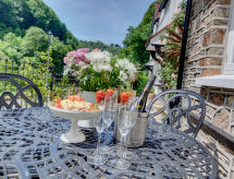 4-Zimmer-Haus auf 2 Stockwerken. Geräumig und hell, komfortabel und geschmackvoll eingerichtet: offenes Wohnzimmer mit TV, Flachbildschirm und DVD. Offene Küche (4 Kochplatten, Backofen, Mikrowelle, Tiefkühler) mit Esstisch. Sep. WC. Obergeschoss: 1 Doppelzimmer mit 1 Doppelbett, Dusche/WC und TV (Flachbildschirm). 1 Zimmer mit 2 Betten. Bad/Dusche/WC. Heizung. 2. Obergeschoss: 1 Doppelzimmer mit 1 Doppelbett, Dusche/WC und TV (Flachbildschirm). 1 Zimmer mit 2 Betten und TV (Flachbildschirm). Heizung. Terrassenmöbel, Gartengrill. Schöne Sicht auf die Landschaft und den Fluss. Zur Verfügung: Waschmaschine, Wäschetrockner. Internet (Wireless LAN, gratis). Bitte beachten: Nichtraucher-Haus. 1 Haustier/Hund erlaubt. Im dazugehörigen Garten kann man den Urlaub in vollen Zügen genießen. Eine Veranda ist verfügbar. Das Haus ist auch mit einem Wäschetrockner ausgestattet. Es gibt ein DVD Spieler.- Ausstattung