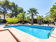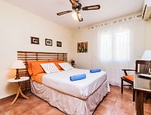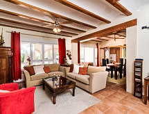 Sehr gemütliche Villa "Mariposa". Im Ortsteil d'Absubia, ruhige, sonnige Lage, 3 km vom Meer. Zur Alleinbenutzung: Garten 1'300 m2 (eingezäunt) mit Pflanzen und Bäumen, Schwimmbad (8 x 4 m, 120 - 180 cm tief, saisonale Verfügbarkeit: 01.Jan. - 31.Dez.). Im Hause: Wireless LAN. Treppenweg (15 Stufen) bis zum Haus. Parkplatz auf dem Grundstück. Supermarkt 2 km, Restaurant 2 km, Sandstrand "El Arenal" 3 km. Tennis 3 km. Jugendgruppen nur auf Anfrage.Interior