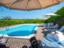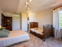 4-Zimmer-Haus 230 m2 auf 2 Stockwerken. Geschmackvoll eingerichtet: Wohn-/Esszimmer mit offenem Kamin, Esstisch, Sat-TV, CD, Stereoanlage und DVD. Ausgang zum Garten. Küche (Backofen, Geschirrspüler, 5 Flammen, Toaster, Mikrowelle, Tiefkühler, elektrische Kaffeemaschine) mit Esstisch und Holzofen. Ausgang zur Terrasse. Sep. WC. Obergeschoss: 1 Zimmer mit 1 Doppelbett, Dusche/WC und Klimaanlage. Ausgang zum Balkon. 1 Zimmer mit 1 franz. Bett (160 cm), 1 Doppelbett, Dusche/WC und Klimaanlage. 1 Zimmer mit 1 franz. Bett (160 cm), Dusche/WC und Klimaanlage. G-Heizung. Parkettböden, Natursteinböden. 2 Balkone, Terrasse 25 m2, überdacht. Terrassenmöbel, Gartengrill, Liegestühle (8). Panoramasicht. Zur Verfügung: Waschmaschine, Wäschetrockner, Kinderhochstuhl, Babybett. Internet (Wireless LAN, gratis). Garage auf dem Grundstück (2 Autos) beim Haus. Bitte beachten: Nichtraucher-Haus. 1 Haustier/Hund erlaubt. Es werden keine zusätzlichen Gebühren vor Ort fällig, ausgenommen der örtlichen Kurtaxe. Bettwäsche, Handtücher, Endreinigung und alle Energiekosten sind inkludiert. CIR: 00500500051 Es gibt eine Feuerstelle. Es gibt ein Pool. Das Haus ist auch mit einem privaten Pool ausgestattet. Ein Wäschetrockner ist verfügbar. Ein DVD Spieler ist vorhanden.- Ausstattung