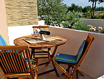 2-Zimmer-Wohnung 35 m2, im Erdgeschoss, Südlage. Schön und gemütlich eingerichtet: Wohn-/Esszimmer mit 1 Doppeldiwanbett (130 cm, Länge 200 cm), Sat-TV (Flachbildschirm), Klimaanlage. Ausgang zur Terrasse. 1 Zimmer mit 1 Doppelbett (2 x 80 cm, Länge 200 cm). Offene Küche (2 Kochplatten, Backofen, Tiefkühler). Dusche/WC. Terrasse 8 m2. Terrassenmöbel. Zur Verfügung: Internet (Wireless LAN, gratis).- Ausstattung