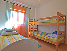 2-Zimmer-Wohnung 50 m2 im 1. Stock, Südwestlage. Wohn-/Schlafzimmer mit 1 Doppelbett (2 x 90 cm, Länge 200 cm), Sat-TV (Flachbildschirm), Klimaanlage. Ausgang zur Terrasse. 1 Zimmer mit 1 Bett (90 cm, Länge 200 cm), 1 x 2 Etagenbetten (90 cm, Länge 200 cm), Ventilator. Küche (4 Kochplatten, Backofen, Mikrowelle, Tiefkühler, elektrische Kaffeemaschine) mit Esstisch. Dusche/Bidet/WC. Terrasse 25 m2, überdacht. Terrassenmöbel. Schöne Sicht auf das Meer. Zur Verfügung: Waschmaschine. Mit eingezäuntem Grundstück. Überdies werden sie verwöhnt mit einem freien Blick auf das Meer. Geeignet zum Grillen. Informieren Sie sich im über den vorhandenen TV Apparat. Ob lokale Neuigkeiten oder internationale Nachrichten, mit dem Fernsehen sind sie stehts gut informiert.- Ausstattung