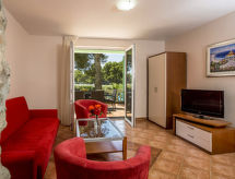 Kinderfreundliche, gemütliche Ferienanlage "Matilde Beach Resort", umgeben von Bäumen. 300 m vom Zentrum von Vodice, sonnige Lage, direkt am Meer, direkt am Strand. Zur Mitbenutzung: Grundstück (eingezäunt) mit Bäumen, Schwimmbad (200 m2, 125 cm tief, saisonale Verfügbarkeit: 15.Mai. - 30.Sep.) mit Innentreppe. Ungleichmässige Schwimmbadform Dusche/WC im Poolbereich, Kinderbecken, Kinderspielplatz. In der Anlage: Empfang, Restaurant, Bar, Internetcafé, Wäscherei (extra), Fahrradverleih. Zur Verfügung: Kanu, Boot (extra). Frühstück (inkl.). Parkplatz (extra) beim Haus. Einkaufsgeschäft 500 m, Kieselstrand, betonierter Strand 50 m. Surfschule, Segelschule 50 m, Tennis 200 m, Minigolf 800 m. Bitte beachten: Nacht Club/Disco in der Nähe. Das Foto ist nur ein Hausbeispiel. Die Wohnungen befnden sich 50-70 m vom Meer und vom Strand entfernt.Interior