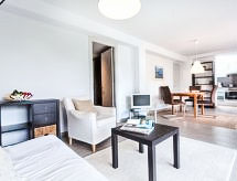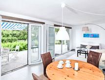 2-Zimmer-Wohnung 50 m2, im Erdgeschoss. Komfortabel und modern eingerichtet: Wohn-/Esszimmer 24 m2 mit 1 Doppeldiwanbett (120 cm), Esstisch, Sat-TV, Digital-TV und Internationale TV-Sender (Flachbildschirm). Ausgang zum Gartensitzplatz. 1 Zimmer mit 1 franz. Bett (2 x 80 cm). Offene Küche (Backofen, Geschirrspüler, 3 Induktionskochplatten, Mikrowelle, elektrische Kaffeemaschine). Dusche/WC. Keine Heizmöglichkeit. Terrasse 24 m2, Garten. Terrassenmöbel. Sicht auf den Garten. Zur Verfügung: Internet (Wireless LAN, gratis). Parkplatz Nr. 2 (1 Auto). Geeignet für Familien. HUTG032353 Unser Garten lädt zum Verweilen ein.- Ausstattung