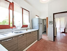 "Mauro", 8-Zimmer-Villa 215 m2 auf 2 Stockwerken. Komfortabel und gemütlich eingerichtet: Wohn-/Esszimmer mit TV (Flachbildschirm), DVD. Ausgang zur Terrasse. 1 Doppelzimmer. Küche (4 Kochplatten, Backofen, Geschirrspüler, Mikrowelle, Tiefkühler). Dusche/Bidet/WC. Obergeschoss: 1 Doppelzimmer. 1 Zimmer mit 2 Betten. 1 Zimmer mit 2 Betten. 1 Zimmer mit 1 Bett. Wohnzimmer mit Klimaanlage. Ausgang zum Balkon. 1 Doppelzimmer mit Klimaanlage. Bad/Bidet/WC, 2 Duschen/Bidet/WC. Heizung (extra). Terrassenmöbel, Gartengrill. Zur Verfügung: Waschmaschine, Bügeleisen, Fliegengitter, Haartrockner. Internet (Wireless LAN, gratis). Die Betten sind bei Ankunft bezogen. Lassen Sie sich kulinarisch verwöhnen vom hauseigenen Koch. Mit eingezäuntem Grundstück. Das Haus ist auch mit einem privaten Pool ausgestattet. Dank der Waschmaschine die Sie vorfinden, sind weniger Kleider zum mitschleppen. Es hat ein DVD Spieler. Um auch mal was schnell selber zuzubereiten, steht ein Mikrowellenofen parat.- Charakteristik des Mietobjekts