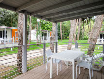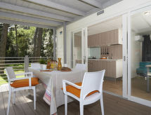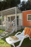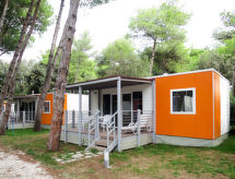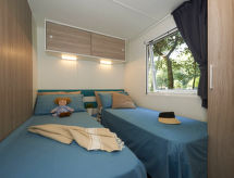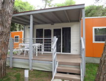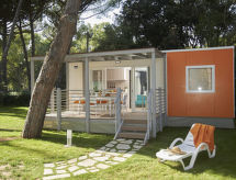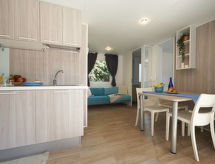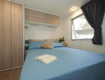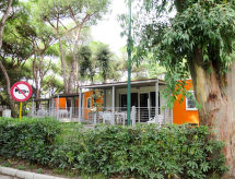 "Maxi Caravan Ischia", 3-Zimmer-Mobilheim 29 m2. Zweckmässig eingerichtet: Wohn-/Schlafzimmer mit 1 Diwanbett, Esstisch und Sat-TV. Ausgang zur Terrasse. 1 Zimmer mit 1 franz. Bett (160 cm). 1 Zimmer mit 2 Betten (80 cm). Kochnische (4 Flammen, Tiefkühler). Dusche/WC. Klimaanlage. Keine Heizmöglichkeit. Terrasse, Laube. Terrassenmöbel, Liegestühle (1). Zur Verfügung: Kinderhochstuhl, Babybett. Internet (Wireless LAN, extra). Parkplatz. Bitte beachten: Nichtraucher-Unterkunft. Für nützliche Informationen fragen Sie ungeniert die Rezeption an. Auf dem Spielplatz können sich die Kinder austoben. Die Klimaanlage sorgt für eine gute Raumtemperierung. Denn der Wohlfühlfaktor spielt eine wichtige Rolle und ist uns wichtig. Es hat eine Veranda. Ein Kinderbecken ist verfügbar. Ein Wäschetrockner ist verfügbar.- Ausstattung