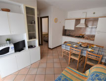 3-Zimmer-Wohnung 42 m2. Zweckmässig eingerichtet: Wohn-/Esszimmer mit 1 Doppeldiwanbett und TV. 1 Doppelzimmer. 1 Zimmer mit 2 Schlafmöglichkeiten. Kochnische (4 Kochplatten, Mini-Backofen, Tiefkühler). Dusche/Bidet/WC. Klimaanlage. Parkplatz. 1 Haustier/Hund erlaubt. Einige Wohnungen verfügen über Etagenbetten. Residenz. Morgens schnell unter die verfügbare Dusche hüpfen, das regt Körper, Geist und Seele an. Lust im Urlaub nicht immer selber zu kochen? Gönnen Sie sich einen Besuch im angeschlossenen Restaurant. Die drückende Hitze kann Körper und Gemüt stark belasten. Deshalb sind die Räumlichkeiten mit Klimaanlagen ausgestattet. Es gibt ein Babybett. Es hat ein Kinderbecken.- Charakteristik des Mietobjekts
