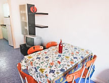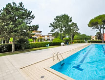 3-Zimmer-Wohnung 57 m2. Hell, einfach und komfortabel eingerichtet: Wohn-/Schlafzimmer mit 1 Doppeldiwanbett, Esstisch und TV. 1 Zimmer mit 1 Doppelbett. 1 Zimmer mit 2 Betten. Kleine Küche). Dusche/Bidet/WC. Klimaanlage, Warmluftheizung. 1 Haustier/Hund erlaubt. Residenz. Das Grundstück ist komplett eingezäunt. Spielangebot für Kinder aller Altersklassen sind auf dem Areal vorhanden. Es gibt ein Parkplatz. Ein Pool ist verfügbar. Es gibt ein Kinderbecken.- Charakteristik des Mietobjekts