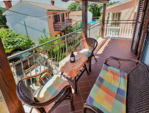 3-Zimmer-Doppelhaushälfte 60 m2 auf 2 Stockwerken. Wohn-/Esszimmer mit Sat-TV (Flachbildschirm), Klimaanlage. Offene Küche (4 Kochplatten, Backofen, Geschirrspüler, Toaster, Wasserkocher, elektrische Kaffeemaschine). Obergeschoss: 1 Zimmer mit 2 Betten und 1 Diwanbett. Ausgang zum Balkon. 1 Zimmer mit 1 Doppelbett. Dusche/WC. E-Heizung. Balkon 10 m2. Balkonmöbel. Zur Verfügung: Haartrockner. Internet (Wireless LAN, gratis). Bitte beachten: Nichtraucher-Haus. Maximal 1 kleines Haustier/Hund erlaubt. Haustiere sind erlaubt. Lassen Sie Ihren Hund mitschnuppern an den schönsten Tagen im Jahr. Wir laden Sie gerne täglich zum Frühstück ein. Ferienobjekt samt Garten zum Entspannen. Damit es auch im Sommer angenehm kühl bleibt, verfügt dieses Ferienobjekt über eine Klimaanlage. Es gibt ein Pool. Es gibt ein Internetanschluss.- Ausstattung